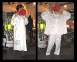 di fianco, le piccole borse indiane. quando si dice tendenza. funziona così, le signore di bombay si comprano prada e ci rimandano il loro look con le nostre madonne, il tutto mixato nelle capitali, Milano Parigi, e proposto come oggetto del momento, irrinunciabile per le fashion victims.